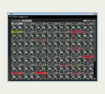 Oandaの提供する69通貨ペアのリアルタイムプライスで
