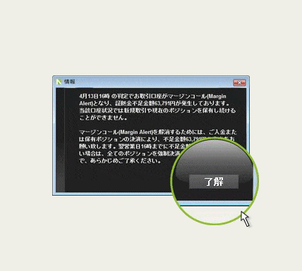 取引画面でマージンコールを確認マージンカットまで24時間以内に対処することが可能です。