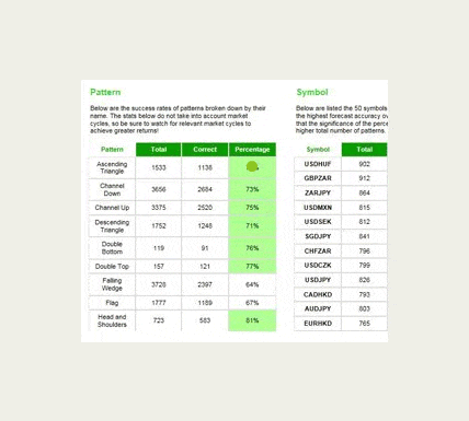 Autochartistが特定した潜在的な取引機会を独自に分析することができます。また、パターン一致エンジンが推定目標価格を達成する確率は通常60%から80%です。