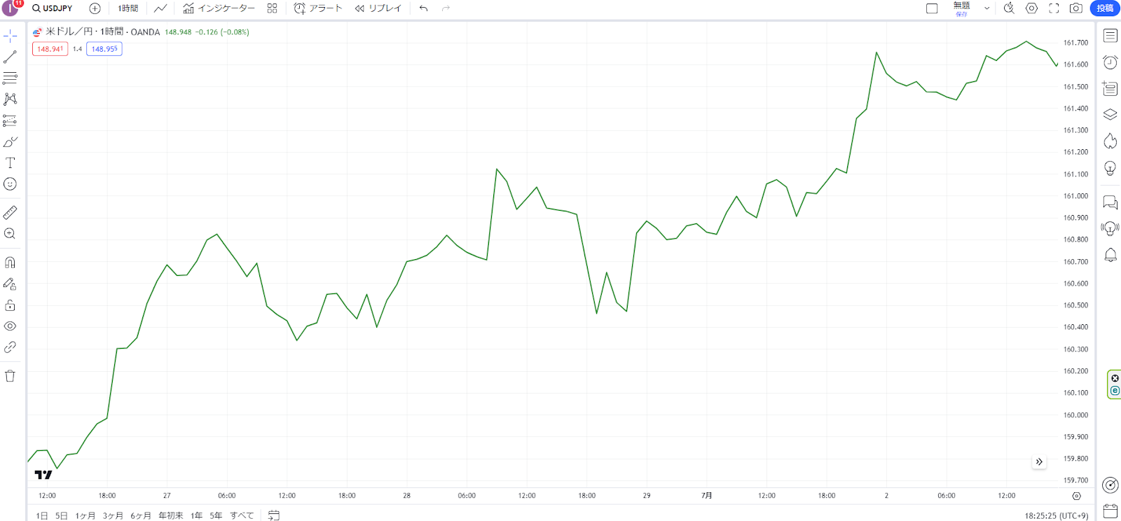 OANDA証券が提供する「fxTrade」では、TradingViewを用いた取引を行えます。