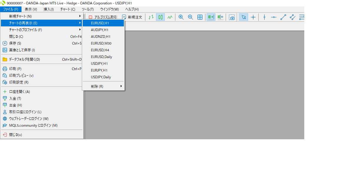 MT5(PC版)のチャートの閉じ方・再表示の方法