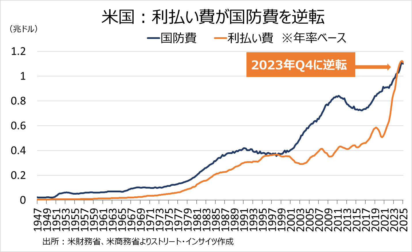 チャート:米利払い負担と国防費の推移
