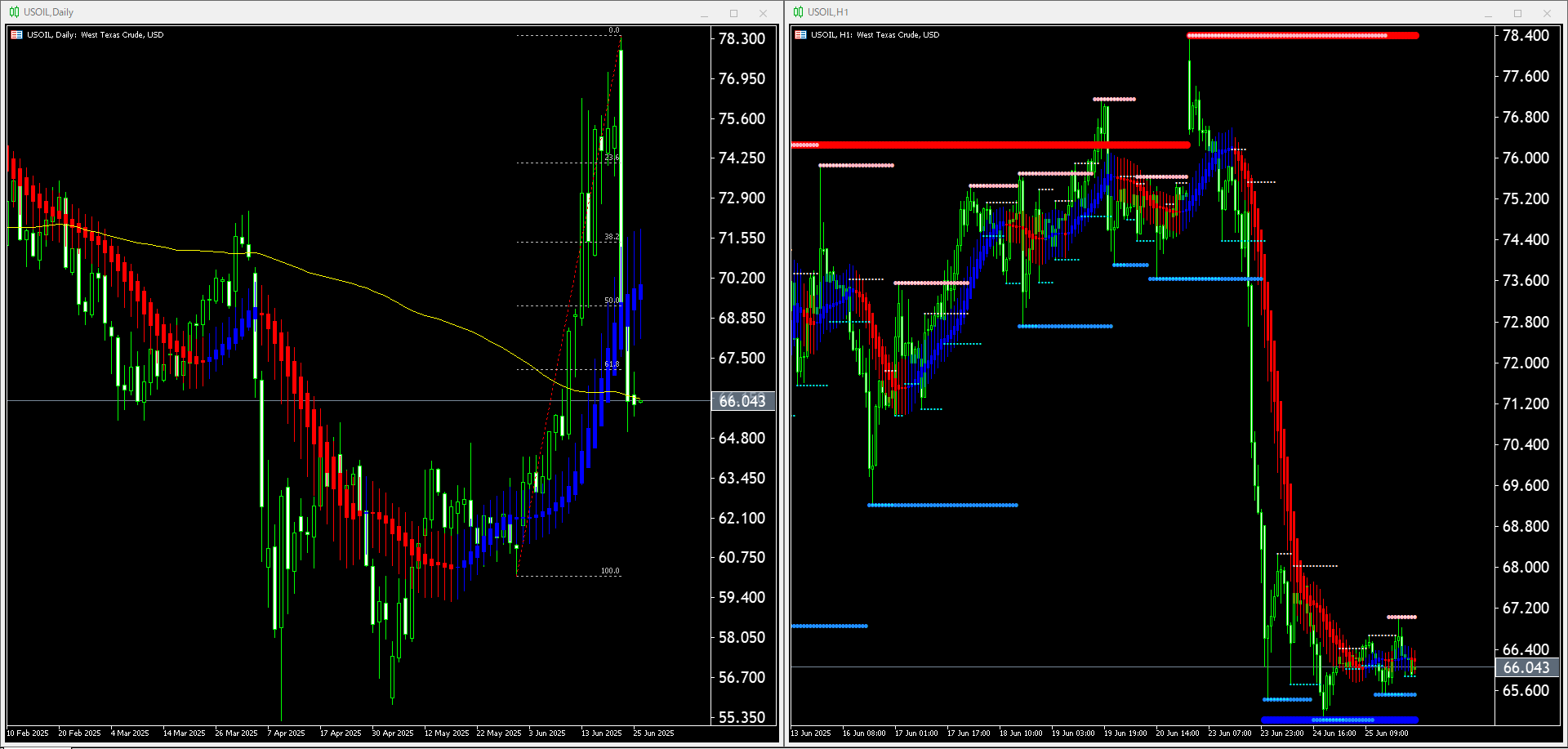 【WTI原油(USOIL)】本日(2025年6月26日)のチャートテクニカル分析
